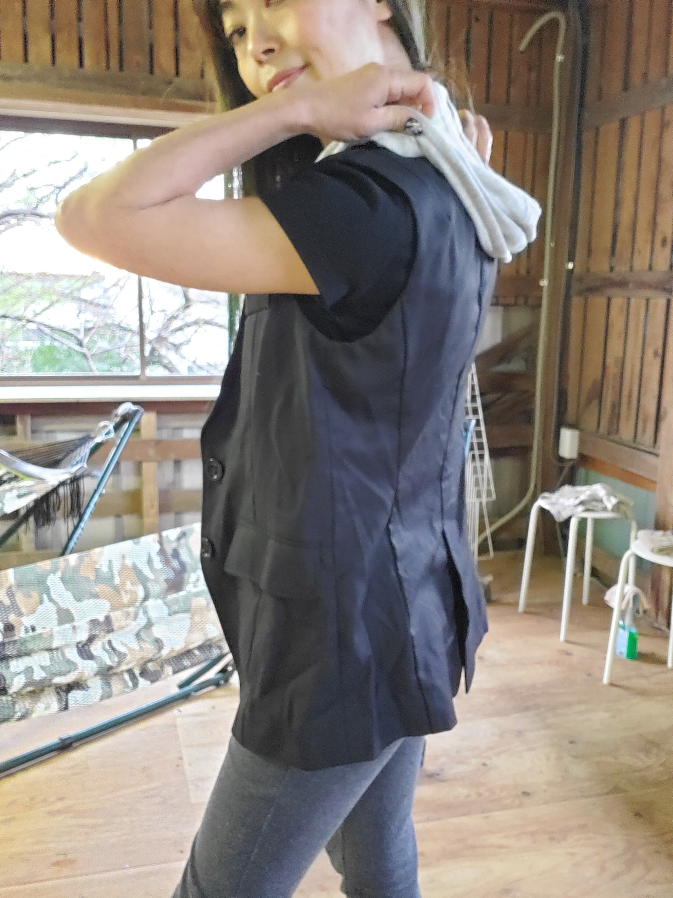 フード取り外し可能です。お尻が隠れる長さです。開けて着てもよいし、閉めてもシルエットがきれいです。