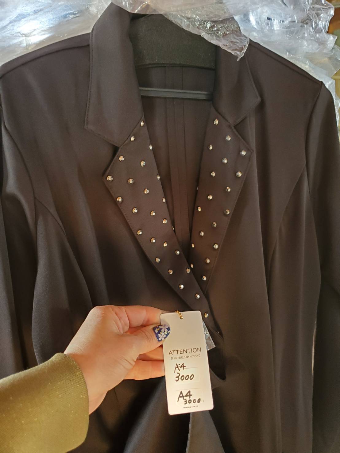 襟の部分に小さなスタッズがついており、丈は長めです。